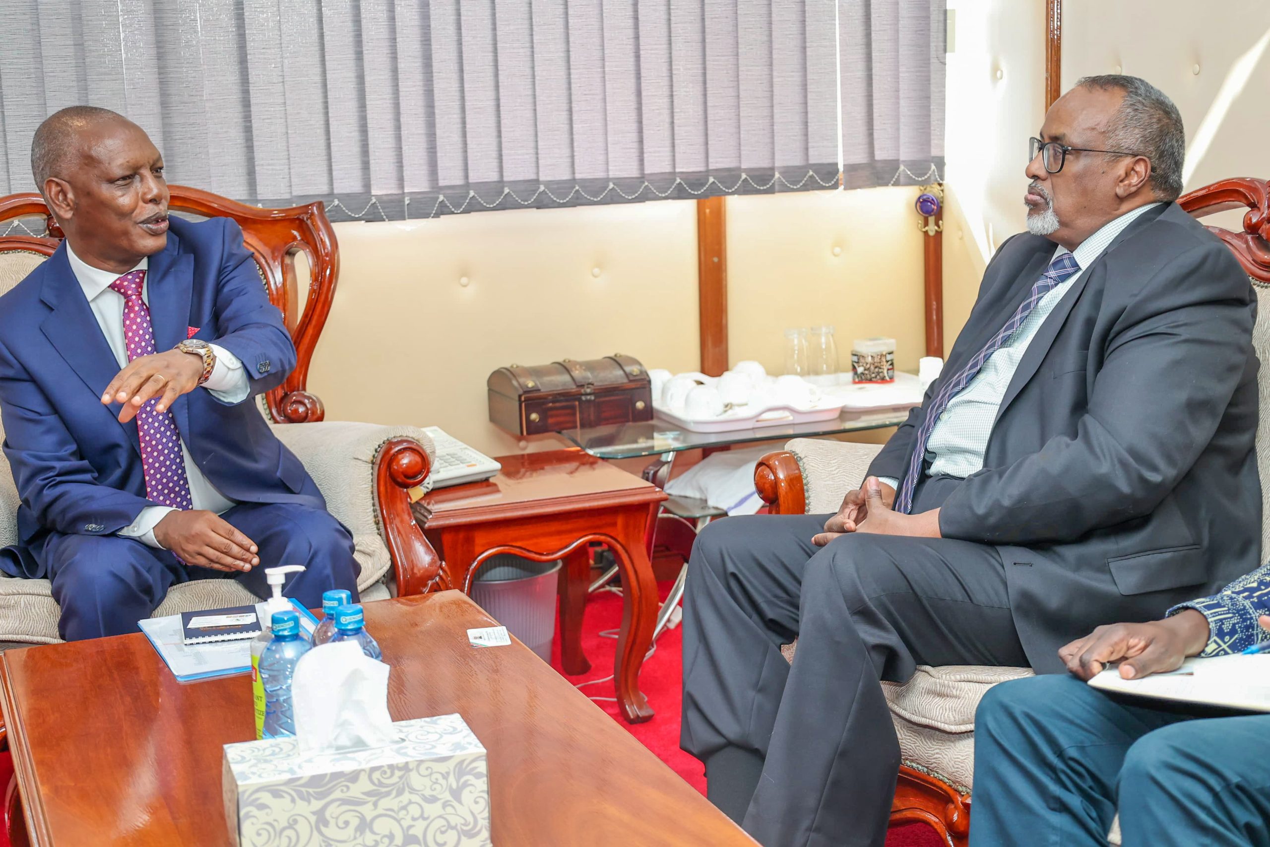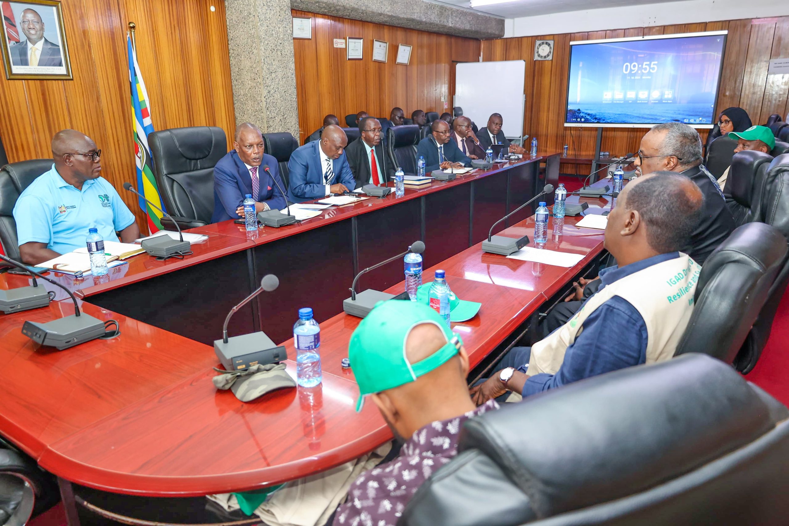 Dr. Andrew Karanja, Cabinet Secretary for Agriculture and Livestock Development, flanked by Dr. Kipronoh Ronoh, Principal Secretary for Agriculture, hosted an IGAD delegation led by H.E. Mohamed Ware, Deputy Executive Secretary, at Kilimo House. The delegation included representatives from Kenya, Djibouti, Ethiopia, Somalia, Uganda and South Sudan.